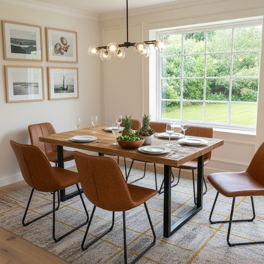 Bring rugged charm and timeless craftsmanship to your home with the Handmade Rustic Canadian Timber Dining Table from Harrisons Handmade Furniture. Crafted from premium Canadian timber, each dining table is unique, showcasing natural grains and textures that give it a one-of-a-kind character. Its robust, industrial design and twice kiln-dried wood make it perfect for large, sunlit spaces, ensuring stability and durability. Every table comes with a 2-year guarantee, providing lasting quality and peace of mind.